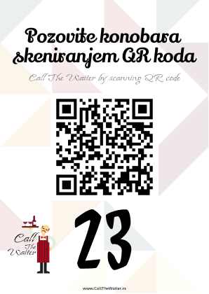 Call The Waiter Karte su specijalne plastične kartice koje postavljate na Vaše stolove. Na kartama se nalazi QR kod čijim skeniranjem se poziva konobar. Mi Vam nudimo već pripremljen dizajn i izradu Call The Waiter karte, a na Vama je samo da izaberete. Postoji mogućnost izrade dizajna po Vašoj želji.