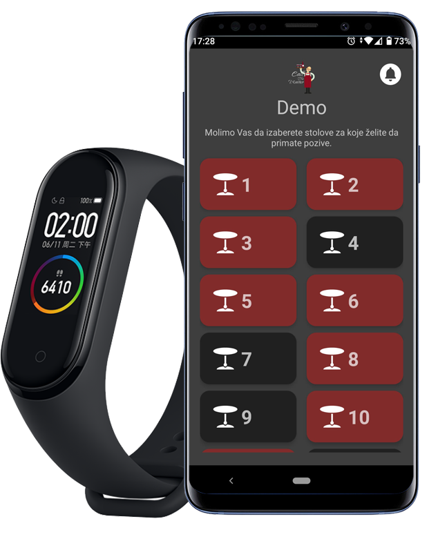 Konobar u realnom vremenu dobija poziv preko pametnog sata na kojem mu se ispisuje broj stola sa kojeg je pozvan.